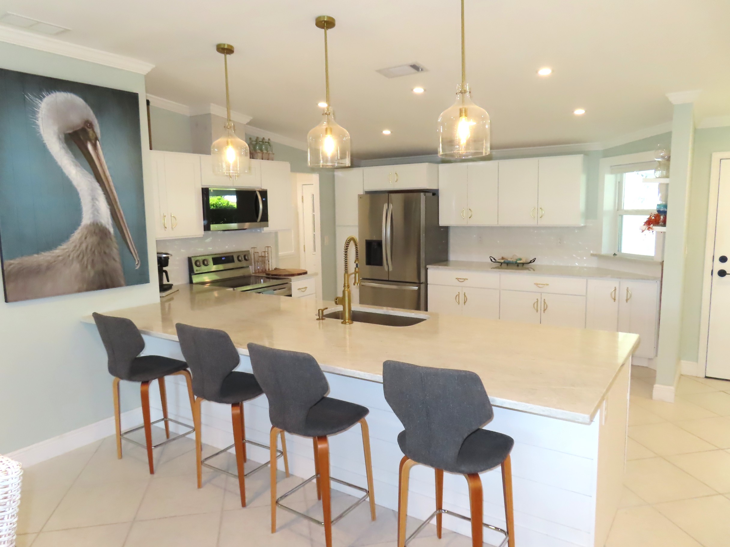 Beautiful newly updated Garage Home in Crane Lakes for under 300,000! This 3/2 Covington home is located on the 5th fairway with a view of 2 ponds and the golf course! You will love this open concept home with a large dining & living room area. The kitchen has been updated with all new cabinetry, quartz countertops & SS appliances. Both bathrooms have been updated with new cabinetry, quartz countertops and beautiful tile. New flooring has been installed in all bedrooms, bathrooms and laundry area. There is a mini split a/c in the 2 car garage for your comfort. Newer roof in 2020, AC & HW heater in 2018. This home is a must see!! |